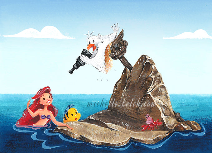 This is a fine art reproduction of an original painting with Human stuff scene from Little Mermaid. Available in various sizes : from 4x6 inches up to 6x8 inches.