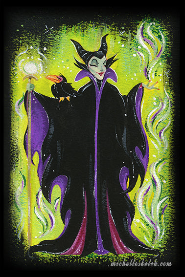 This is a fine art reproduction of an original painting with "Mistress of all Evil". Available in two sizes: 4x6 inches and 5x7 inches.