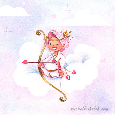 This is a fine art reproduction of an original painting with Valentine Cherub. Available in two sizes : 4x4 inches and 5x5 inches.